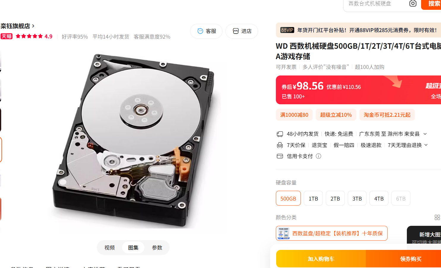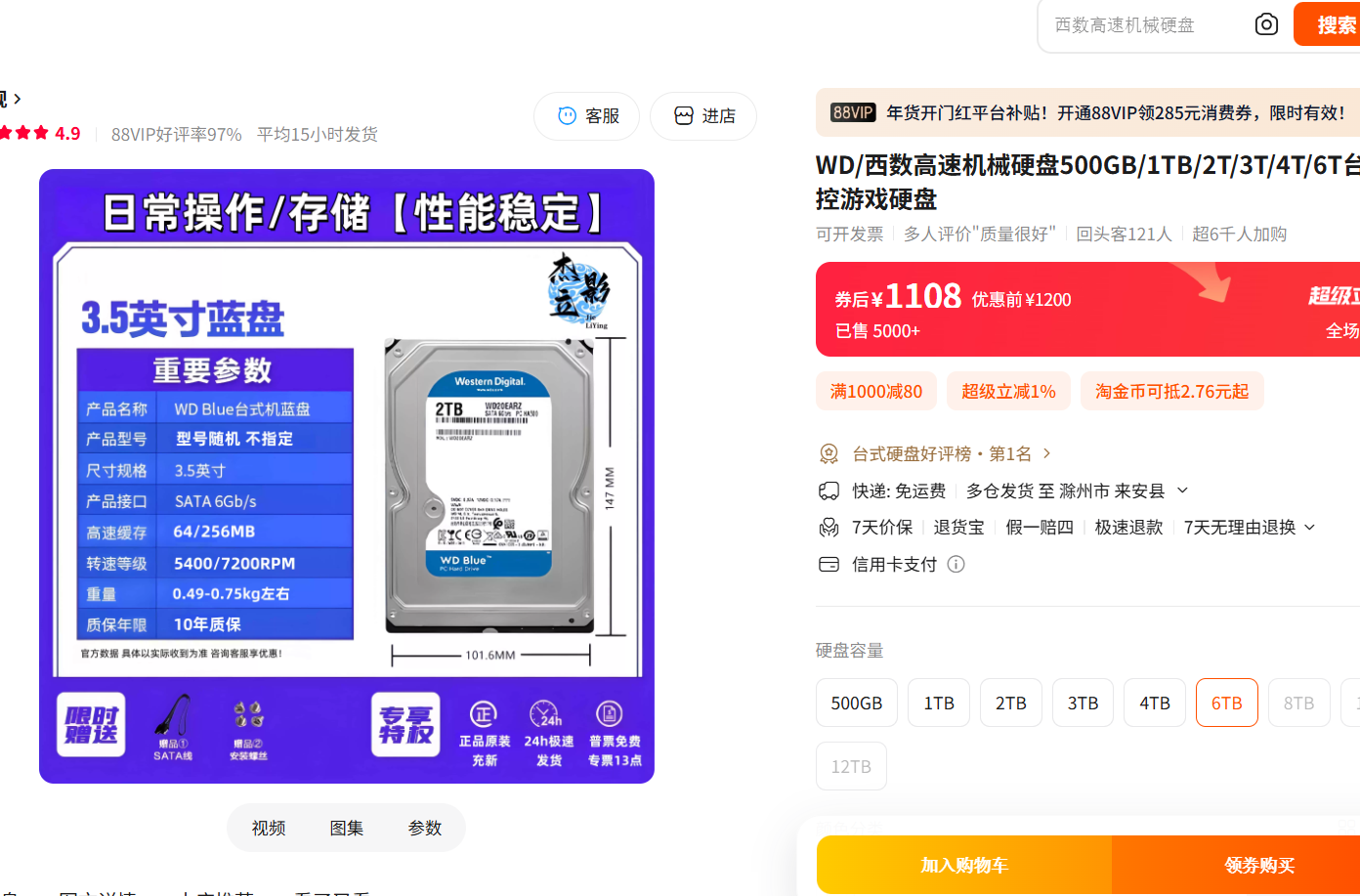 - 机械硬盘(HDD):里面有高速旋转的磁盘片和读写磁头,像老式唱片机。容量大(比如4TB、8TB),价格低,但速度慢、怕摔。